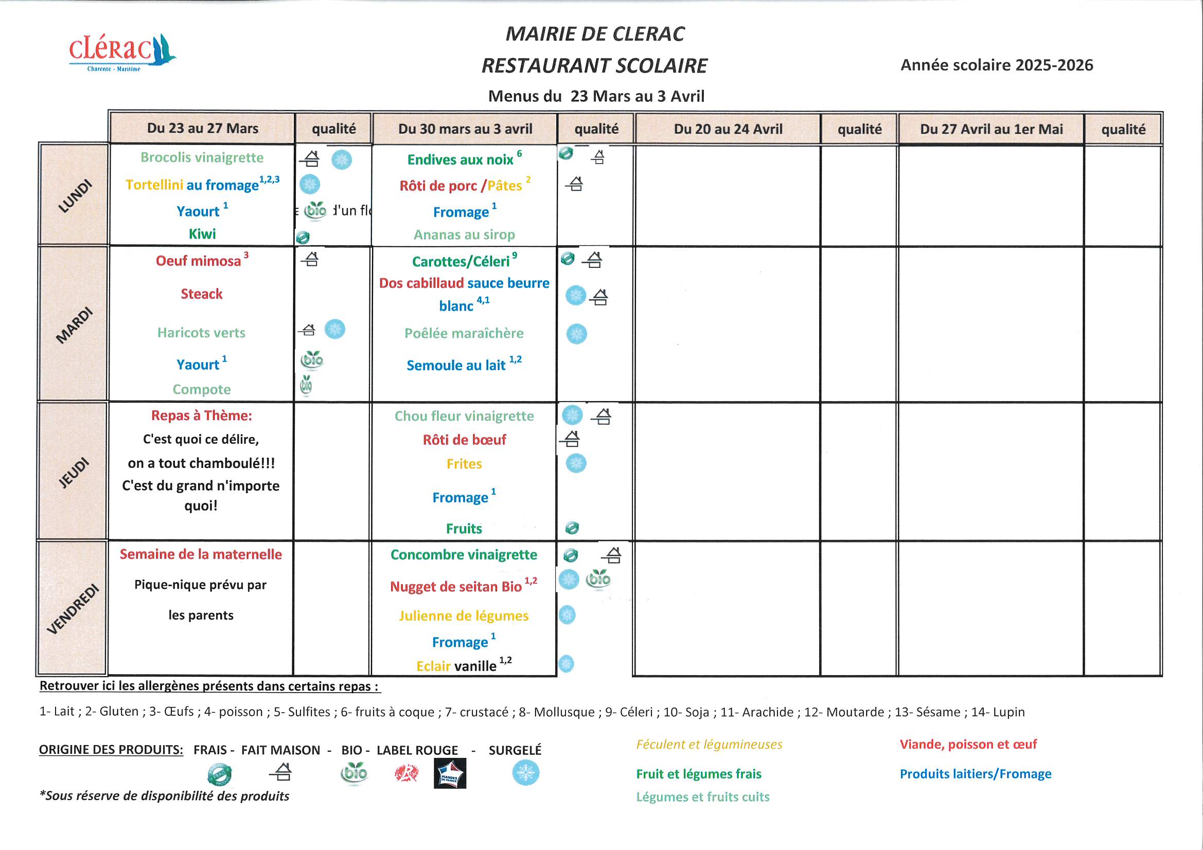 L’école de Clérac comprend cinq classes à double niveau :